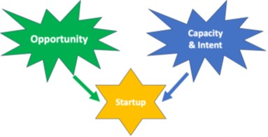 Startups are launched when opportunity meets intent. Entrepreneurship is a latent trait. Entrepreneurial intent lies dormant until an idea impels a founder to take the leap and pursue the opportunity.